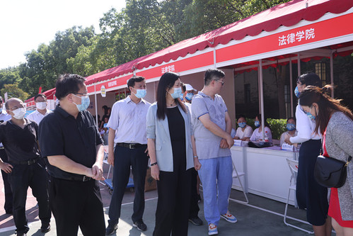 8月31日上午,校党委书记夏小和,校党委副书记、校长刘晓红,校党委副书记刘刚一行来到学校新生报到现场,看望慰问2021级报到新生和一线工作人员,对来到上海政法学院学习的全体新生表示热烈欢迎,对连日来冒着高温坚守迎新工作一线的广大师生表示衷心感谢。