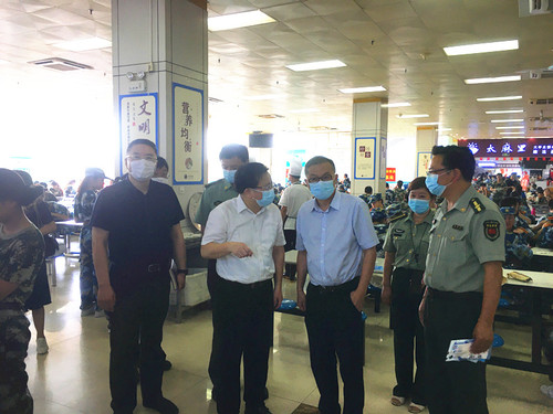 平辉一行和校领导来到学生餐厅,看到刚刚参加完军训的学生正在排队就餐,平辉详细了解餐厅疫情防控、食品供应及安全卫生等情况,要求学校扎实做好餐厅等人员密集场所疫情防控工作,高度重视食品卫生安全,让每一位在校师生放心用餐、安全用餐。