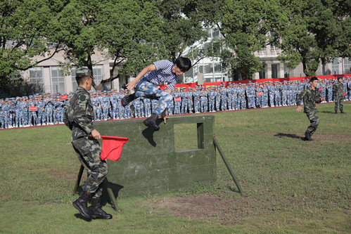 哨声响起,军事八项接力赛火热开赛。军训师部老师、辅导员,武警教官、学校退役士兵分别同台竞技,比拼着速度与激情、力量与热血;帐篷搭建赛中,四个排的学生分工协作、手法娴熟,展现了熟练的军事技能与团队合作精神。作为教育部首批“国防教育特色学校”,军事技能展示一直是我校军训富有特色的一个环节,不仅丰富了军训的内涵和形式,让军训更有“兵”味,也推动了教官、老师和学生融为一体、共同成长。