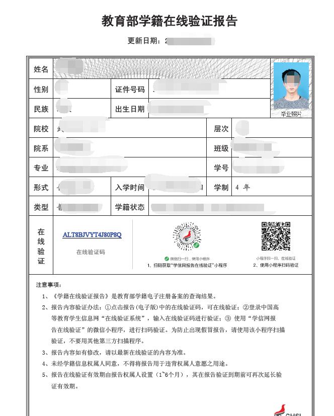 3)《教育部在线学籍验证报告》《教育部学历证书电子注册备案表》需登陆中国高等教育学生信息网下载和打印。