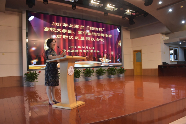 交相辉映,相得益彰。10月15日下午,由中共上海市教育卫生工作委员会、上海市教育委员会、上海市司法局、上海市法治宣传教育联席会议办公室、共青团上海市委员会、上海市青少年服务和权益保护办公室主办,上海政法学院、华东政法大学附属中学承办,上海市律师协会、上海教育报刊总社、华东师范大学协办,“尚法杯”2021年上海市高校大学生、中学生法治辩论赛共同启动仪式暨领队会议在华东政法大学附属中学举行。
