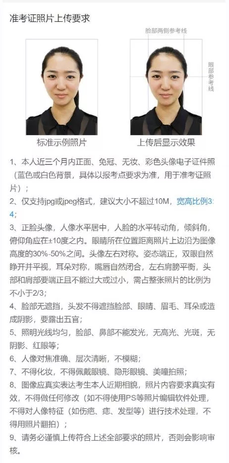 1.本人近三月内正面、免冠、无妆、彩色电子证件照,照片要求见下图: