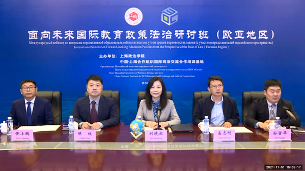 11月1日,“面向未来国际教育政策法治研讨班(欧亚地区)”结业典礼在中国-上合基地举行。上海政法学院校长、中国-上合基地办公室主任刘晓红,中国-东盟教育交流周组委会办公室代表杨颖,上海政法学院党委常委、宣传部部长、党办校办主任高志刚,中国-上合基地办公室培训部主任、上海政法学院继续教育学院(培训部)院长陈校等出席结业典礼。来自印度、马来西亚、尼泊尔、斯里兰卡等15个国家约200名参训学员线上参加了此次活动。