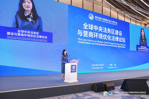 11月7日上午,刘晓红校长出席第四届中国国际进口博览会—全球中央法务区建设与营商环境优化法律论坛。本次论坛由中国国际贸易促进委员会、国际商事争端预防与解决组织主办,天府中央法务区(四川)、海丝中央法务区(福建)、上海市闵行区政府承办,上海南虹桥商务发展公司、上海市法学会、上海政法学院协办。