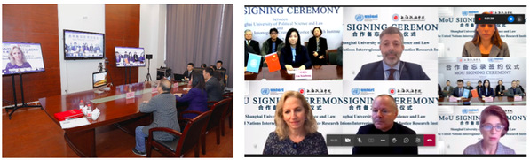 今年是中华人民共和国恢复在联合国合法席位50周年。2021年10月25日,国家主席习近平与联合国秘书长安东尼奥•古特雷斯共同主持召开中华人民共和国恢复合法席位50周年大会并发表重要讲话。为落实习近平主席和古特雷斯秘书长的讲话精神,经过前期的多轮双边会谈和沟通,12月3日下午,上海政法学院与联合国区域间犯罪和司法研究所(UNICRI)举办线上仪式,签署合作备忘录。