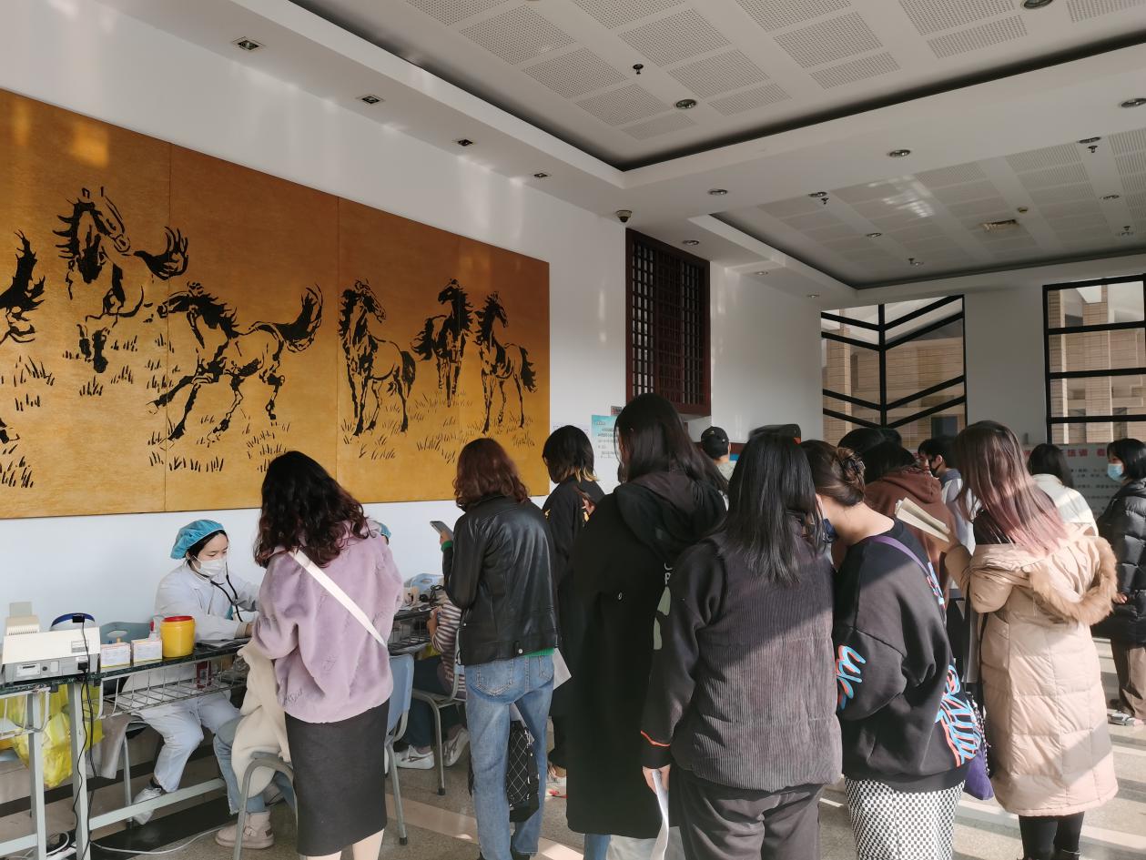 受疫情影响,本次活动增加不少疫情防控相关工作要求和举措,献血师生耐心排队等候,在现场志愿者引导下,先后完成信息登记、个人体检、上台采血等环节,献血现场井然有序。