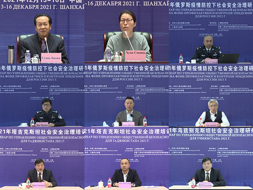 本次培训班历时4天,来自上海市公安局、浙江大学、中保华安集团、上海政法学院的专家受邀讲授了法治中国建设、新冠肺炎疫情防控、网络社会安全、城市交通管理和安保建设、口岸管理、国际执法合作、“三股势力”和毒品问题等相关主题的课程。