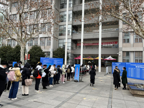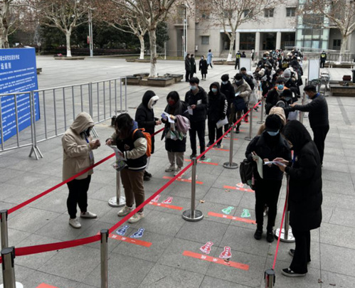 考试当天,正逢我市寒潮来袭,低温与大风交织。研究生处多次通过网站、微信公众号等渠道发布考前提醒、考风考纪公告、防疫须知、防寒保暖提示等,并在考场周边设置详细的入场导引图与指示牌,安排考务人员进行引导,确保考生顺利入场参加考试。为隔离考生设置专用通道,在专门工作人员引导下,进入隔离考场考试,并妥当安排其就餐、休息等事项。