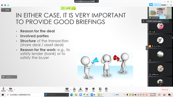 4月6日晚,“海外讲坛”第1讲开讲。国际法学院柯沛聪(Ralph Vigo Koppitz )副教授以“尽职调查”为主题,将涉外律师真实的工作经历分享给我校师生。柯沛聪副教授毕业于德国慕尼黑大学,是德国执业律师,曾在多家国际律师事务所、商会、跨国公司任职,具有丰富的实务经验。本次讲座受到了参与师生的一致好评,并激发了我校学生探索实践法学、投身涉外法治建设的兴趣。