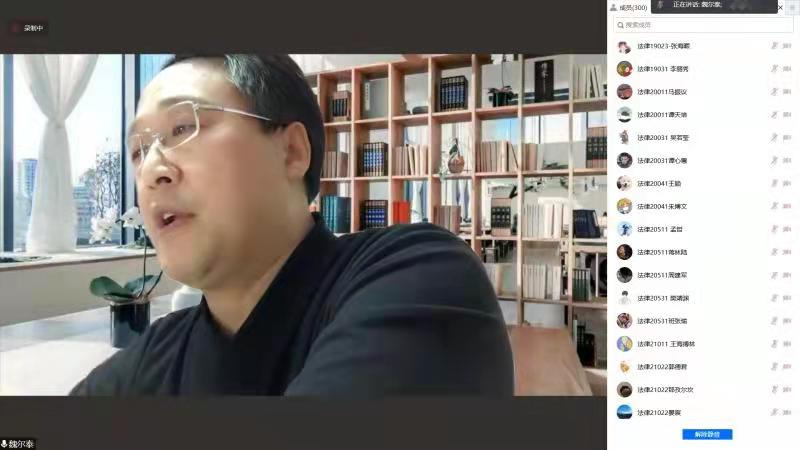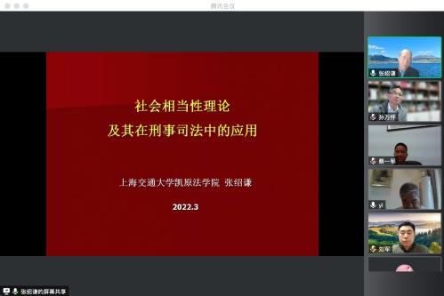3月31日晚,上海交通大学凯原法学院张绍谦教授受邀为我校师生做“社会相当性原理及其在司法中的运用”学术讲座。讲座由我校闫立教授主持,华东政法大学刑事法学院院长孙万怀教授、我校警务学院院长蔡一军教授、刑事司法学院刘军教授、科研处处长赵运锋教授共同参加与谈。来自司法实务部门的人员与我校师生合计600余人共同在线参与本次讲坛。