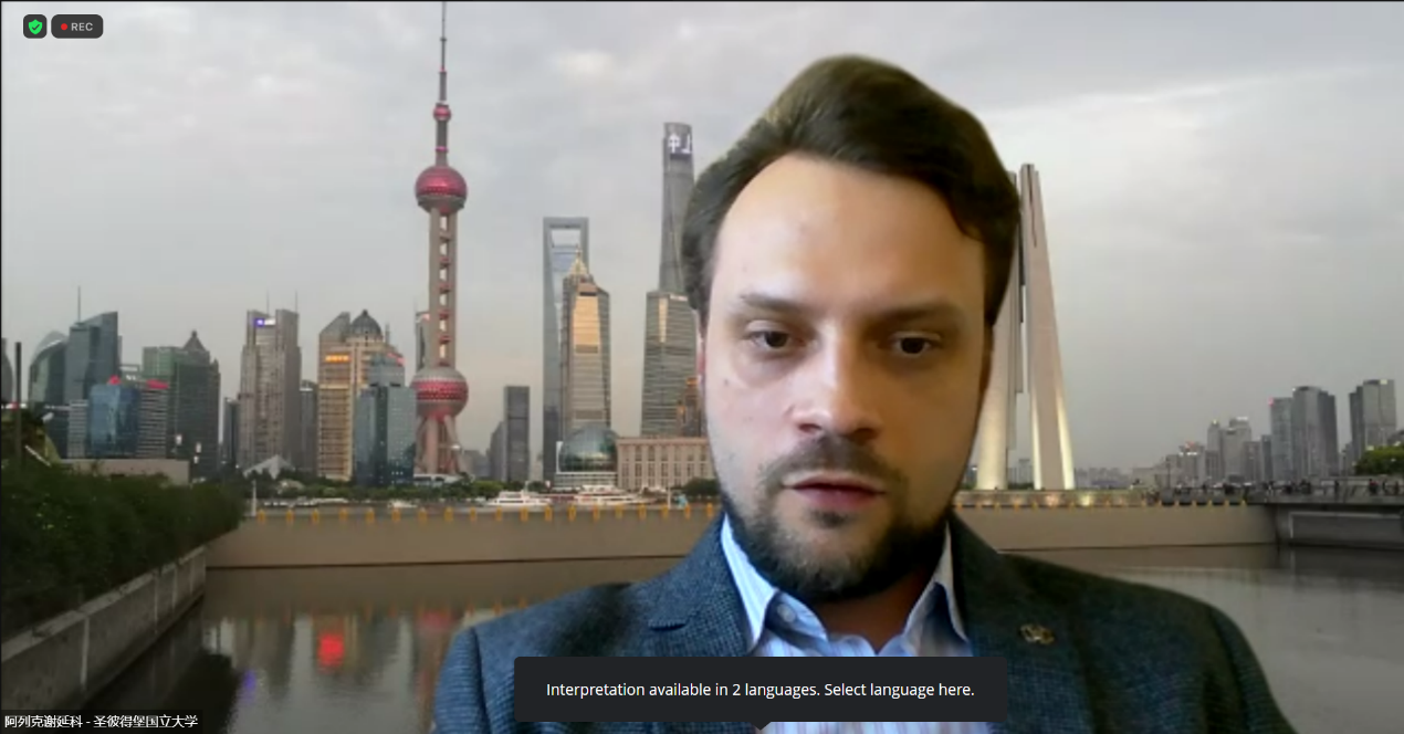 上合成员国常设教育专家工作组俄方主席、俄罗斯友谊大学副校长叶夫列莫娃致辞