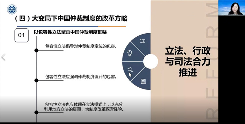 刘晓红强调,关于中国仲裁制度的改革方略,需要立法、行政与司法合力推进。首先要以包容性立法擎画中国仲裁制度框架,对仲裁制度定位包容、对制度设计包容、对立法模式的包容。其次,要以中立性监管保障中国仲裁制度运行,合理保障政府对仲裁机构的监管,推进去行政化改革、发挥行业协会的自律和服务功能并严格依照法律规定展开适度间接监管。最后,要以友好型司法筑牢中国仲裁制度底线,在司法监督模式、监督程序、监督理念上,坚持创新、守住底线,以保障大变局下中国仲裁制度改革顺利、平稳进行。(丁嘉语 撰稿)