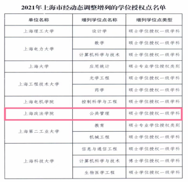 近日,国务院学位委员会发布了《关于下达2021年动态调整撤销和增列的学位授权点名单的通知》(学位〔2022〕11号),我校获批增列“公共管理”一级学科硕士学位授权点。本次获批增列,进一步优化了我校学位点建设布局,实现了我校学科门类的新突破,标志着我校研究生教育的新提升,为持续推进研究生教育改革与发展、努力创建具有鲜明政法特色的一流应用型大学,奠定了更为坚实的基础。