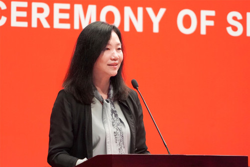 校长刘晓红出席并致辞。刘校长从“发展历程,闪耀着象征奉献国家、服务社会的红色”“发展成就,焕发着代表成就辉煌、硕果累累的金色”“发展前景,展现着彰显朝气蓬勃、充满希望的绿色”三个方面介绍了上政的蓬勃发展,并深情寄语上政学子:一是要志存高远、德法兼修,让理想成为青春的本色。二是要踔厉奋发、笃行不怠,让奋斗成为青春的底色。三是要知行合一、担当作为,让磨砺成为青春的亮色。