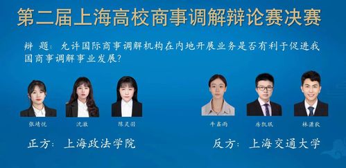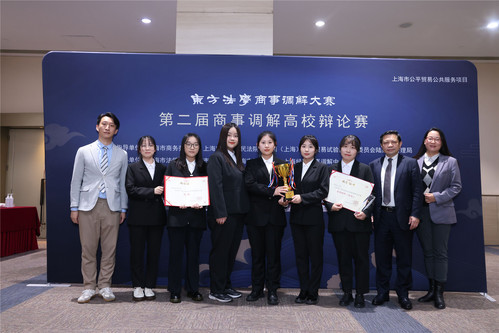 11月23日,由上海市法学会、上海市司法局、上海市商务委员会和上海经贸商事调解中心等单位共同举办的第二届商事调解高校辩论赛决赛打响。经过激烈角逐,上海政法学院与上海交通大学共同获得本届比赛中文组冠军,我校国际法学院陈灵羽同学荣获最佳辩手。