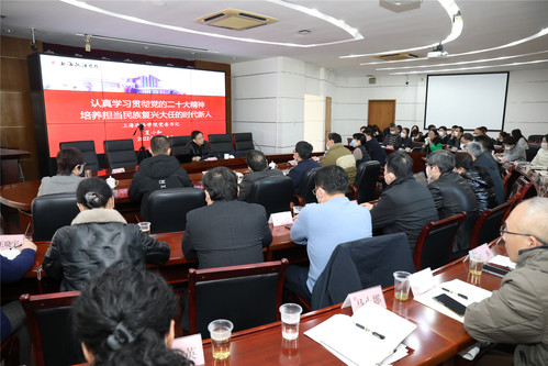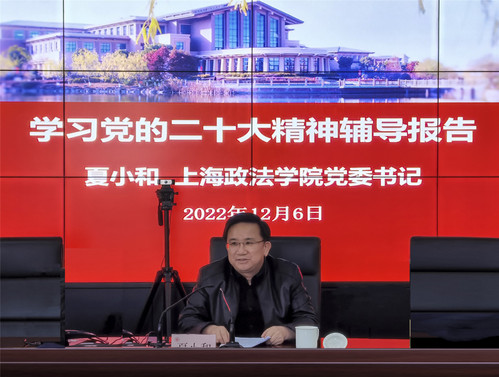 12月6日下午,上海政法学院党委学习贯彻党的二十大精神宣讲团团长、校党委书记夏小和在求实楼513视频会议室为学校全体中层干部作题为“认真学习贯彻党的二十大精神 培养担当民族复兴大任的时代新人”专题辅导报告。马克思主义学院教师和党委组织部全体党员参加学习。校党委常委、组织部统战部部长王静主持报告会。