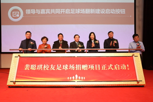 在全体嘉宾与师生的共同见证下,夏小和、刘晓红、裴桂雨、彭红香、刘刚、郑少华以及裴聪琪共同开启足球场改建启动卷轴,标志着足球场慈善项目的正式开启。