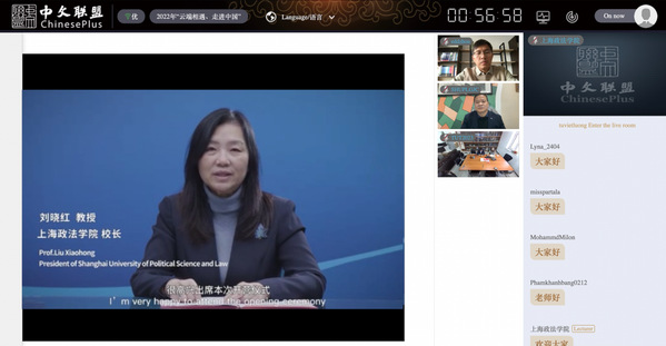 1月3日,经教育部中外语言交流合作中心批复,我校承办的第三期“云端相遇,走进中国”项目在中文联盟平台顺利开营。校长刘晓红在开营仪式上致辞并宣布正式开营,共有来自26个国家的四百多名国际学生注册参加。