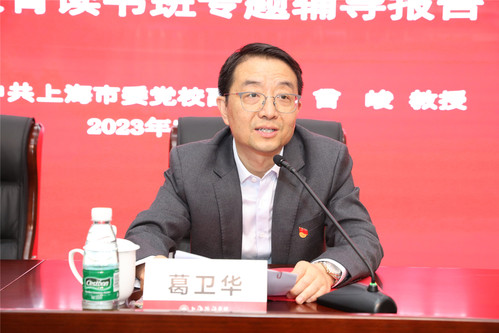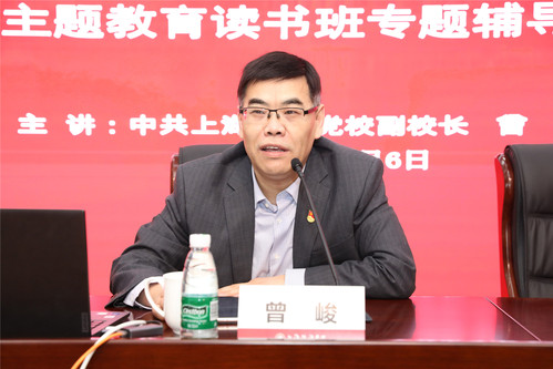 5月6日下午,上海政法学院学习贯彻习近平新时代中国特色社会主义思想主题教育读书班“学思想 强党性”第二讲在成德楼四楼多功能厅举行,特邀中共上海市委党校副校长曾峻教授作“学好用好新思想的权威教材——《习近平著作选读》导读”专题辅导报告。报告由校党委书记、主题教育领导小组组长葛卫华主持,学校党政领导班子成员、全体中层干部及部分机关支部党员现场参加学习。