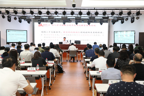 校党委副书记、纪委书记、监察专员潘牧天表示,教育是功在当代、利在千秋的德政工程。要深刻认识习近平总书记关于教育的重要论述的战略意义;要深刻把握习近平总书记关于教育的重要论述的思想精髓;要以习近平总书记关于教育工作的重要论述为指引,推动学校教育事业改革创新发展。认真落实“党委领导下的校长负责制”,加强高校党的建设,抓好立德树人根本任务,加强学校师资队伍建设。