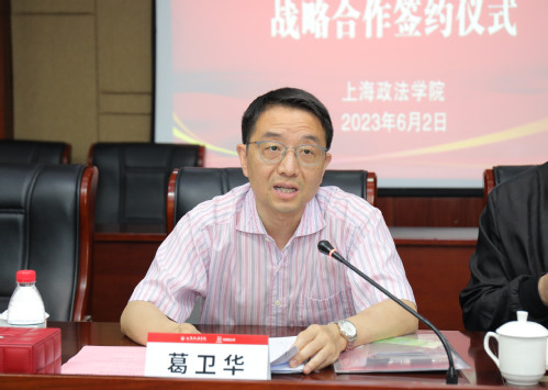 葛卫华介绍了上海政法学院的办学定位和办学理念,表示近年来,学校围绕建设一流应用型大学的目标,不断在学科建设上取得新突破。特别是2022年5月,学校主动顺应党和国家纪检监察体制改革,成立了上海首家纪检监察学院。葛卫华表示,中核五公司作为中核集团旗下中国核建的重要成员单位,近年来围绕“兴核强国”的重大使命,书写了我国核工业高质量发展的辉煌篇章。双方以纪检干部人才培养为起点构建校企战略合作关系意义重大,是对深化国资央企与上海市合作精神的积极响应,也是贯彻大力推进高等教育综合改革先行先试要求的具体举措。下一步,双方将进一步拓展合作空间,大力加强在党建、团建、纪检监察、学习交流、法律专业培训及学生实习实践等方面的交流合作,在服务央企高质量发展、培养新时代人才方面结出硕果。