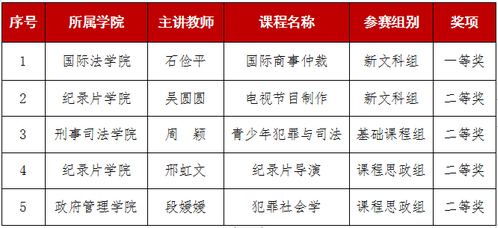 第三届上海市高校教师教学创新大赛上海政法学院获奖名单