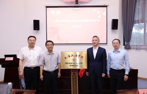 葛卫华、施伟东、潘牧天、王遵共同为上海政法学院党内法规与纪检监察学青年研习会揭牌