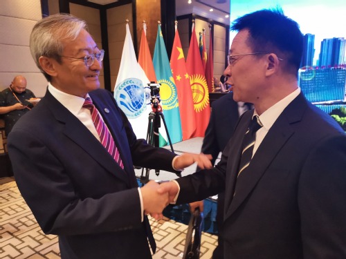 次日,罗立刚一行拜访了上合秘书处,向张明秘书长汇报了中国-上合基地办公室围绕“培训、智库、论坛”三大核心功能开展的具体工作情况。罗立刚表示,中国-上合基地办公室圆满完成了上级交办的培训任务,为上合组织培养了一大批司法执法人才。张明秘书长对中国-上合基地办公室宣布成立十年来开展的工作表示肯定,并提出两点希望:一是发挥平台与资源优势,加强上合组织相关法律法规的研究;二是加强同其他上海合作组织有关机构的合作,共同助力上合组织的进一步发展,实现互利共赢,服务好国家战略。