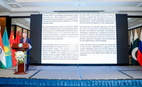 6月20日,“上海合作组织日”招待会暨“上合组织亲善大使”荣誉称号颁授仪式在京召开,庆祝上合组织成立22周年。全国政协副主席、上海合作组织睦邻友好合作委员会主席沈跃跃,印度驻华大使罗国栋,上合组织秘书长张明出席并致辞。