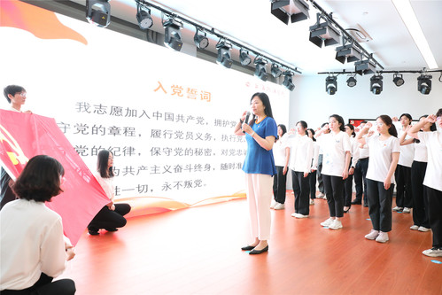 在刘晓红的领誓下,与会全体党员重温入党誓词。
