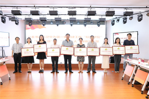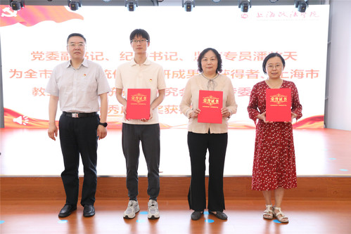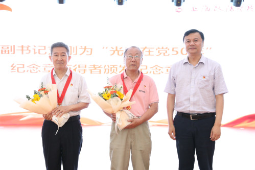 集中表彰阶段由刘晓红主持,潘牧天首先宣读表彰对象名单,全体与会人员一起观看学校第一批基层党组织“攀登”计划正式挂牌单位宣介视频。葛卫华、潘牧天、刘刚分别为学校第一批党建工作“标杆学院”“样板支部”“双带头人”教师党支部书记工作室,2022年度全市组织系统优秀调研成果,2023年度市教育卫生党委系统党建研究会高校专委会课题优秀成果以及“光荣在党50年”纪念章获得者授牌、颁奖。