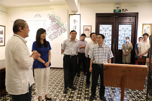 党委中心组扩大学习会阶段,在学校领导班子的带领下,学校党委主题教育领导小组办公室、各二级学院党组织一行30余人赴青浦区金泽工艺社、“水乡客厅”开展主题学习实践活动。