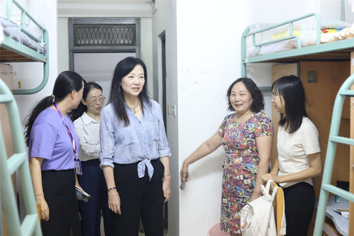 校领导一行最后来到学生社区,深入宿舍了解学生入住情况,与学生和家长亲切交流,及时回应他们关心的问题,希望同学们尽快适应大学生活,树立远大理想,找准奋斗目标,珍惜大学时光,勇于求知探索,为实现自己的人生价值而奋力拼搏进取。