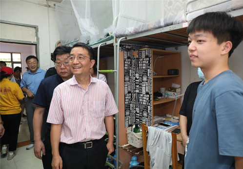 校领导非常关心学生服务保障情况,逐一询问绿色通道、大学生医保咨询、空调租赁服务、网络服务等方面安排,叮嘱各部门一定要想学生所想、急学生所急,高质量、高效率做好各项服务工作,让学生安心,让家长放心。