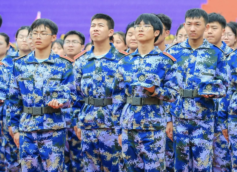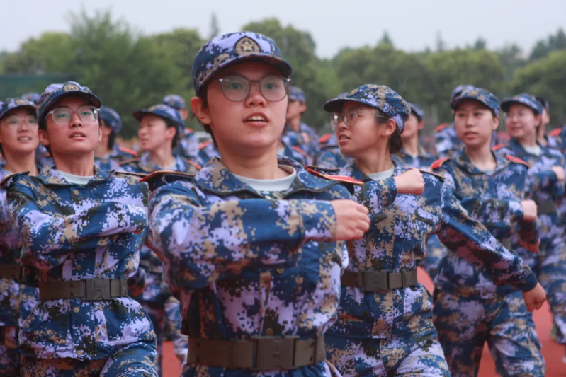 分列式环节,各方阵队列整齐,口号响亮。同学们气势如虹、脚步铿锵,充分展示了14天的训练成果,彰显了上政学子饱满的精神面貌。