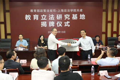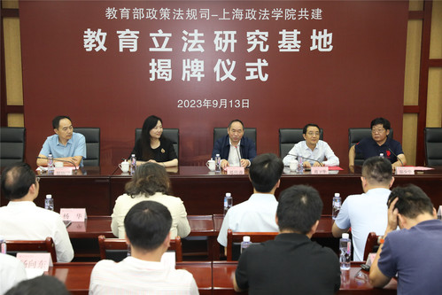 9月13日下午,教育部政策法规司-上海政法学院共建教育立法研究基地揭牌仪式在汇知楼107会议室举行。教育部政策法规司司长邓传淮,政策法规司法制办公室处长翟刚学,政策法规司综合研究处副处长刘博,上海政法学院党委书记葛卫华,党委副书记、校长刘晓红,副校长郑少华出席揭牌仪式。揭牌仪式由郑少华主持。