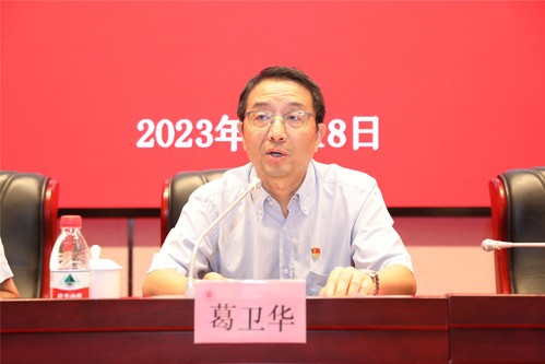 葛卫华在讲话中分析了学校主题教育的有效做法,概括了学校主题教育的主要成效,传达了市委第十七巡回指导组对我校主题教育的评估反馈结果,并就下一步工作提出四点要求:一是要强化理论武装,深入学习贯彻习近平新时代中国特色社会主义思想;二是要践行使命担当,推动学校高水平建设,为社会经济发展作出更大贡献;三是要提升履职能力,立足实际,围绕热点难点堵点问题破圈拓域精准发力;四是要抓牢党的建设,以强有力的组织力推动主题教育后续工作层层深入。
