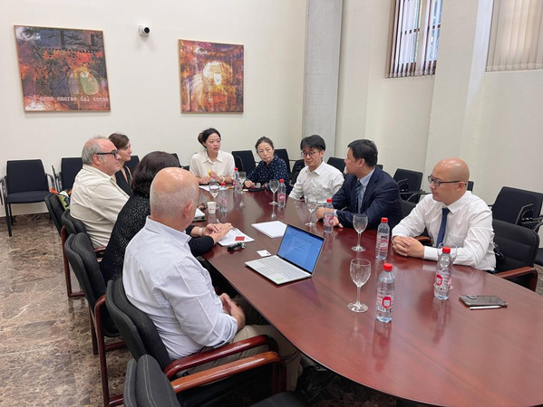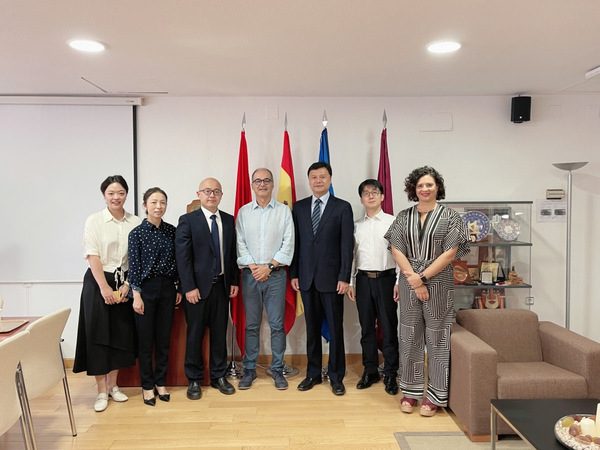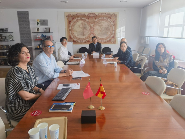 随后,我校代表团先后参观了穆尔西亚大学语言服务中心、传播与文献学院、经济与商学院、法律学院。语言服务中心主任Juana Sanmartin女士、传播与文献学院院长Pedro Hellin先生与国际关系副院长Virginia Villaplana女士、经济与商学院院长Samuel Bauxauli Soler先生与国际关系副院长Marcos Anton先生、法律学院国际关系副院长Maria Magnolia Pardo女士作了相关介绍。代表团与上述学院负责人围绕学科发展现状、人才培养、实践教学、基础设施建设以及教师互访等分别进行了友好交流。双方表示,结合两校现有专业特色,未来将进一步探索实质性合作。