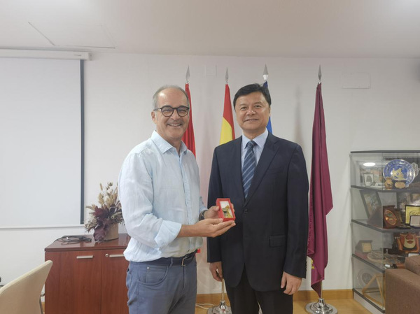 在西班牙穆尔西亚大学,刘刚和穆尔西亚大学国际部副主任Pascual Cantos Gomez先生进行会谈。双方回顾了近五年来校际交流的有关情况。刘刚简要介绍了学校近年来发展情况和办学特色,他表示,学校一直高度重视开展全方位、多层次、宽领域的国际交流与合作,全面提升教育国际合作交流水平和国际影响力,希望与穆尔西亚大学进一步加强交流,充分发挥各自专业优势特色,推动两校在人文交流、人才培养、科研合作等方面展开对话,在更宽领域、更深层次上取得更丰硕的合作成果。双方还围绕两校合作交流协议的相关细节进行了讨论。