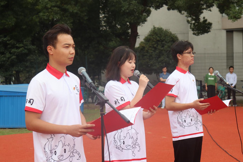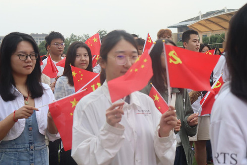 歌赞祖国,家国共兴。在经济法学院王麒皓、政府管理学院吴雪宜同学的带领下,全体师生高唱《国家》,嘹亮歌声同五星红旗共同飘扬在田径场上。这一刻,千言万语汇成一句:我爱你,中国!