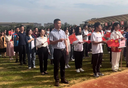 红旗飘扬,献礼祖国华诞;岁月如梭,谱写青春华章。10月1日清晨,学校在田径场隆重举行庆祝中华人民共和国成立74周年升旗仪式,百余名师生齐声高唱《国家》,共同为祖国母亲送上最真挚的祝福。