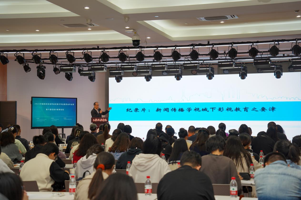 主题论坛由纪录片专业委员会秘书长、中国传媒大学李智教授主持。在主题论坛中,与会专家学者围绕“纪录片的教育与发展创新”展开讨论。何苏六教授发表题为《关于“中国纪录片学派”的思考》主题演讲。他从必要性、正当性和建设路径几方面切入,指出在中国纪录片自主意识不断加强、社会转型与范式转换的当下,“中国纪录片学派”的提出恰逢其时。由何苏六教授担任首席专家的国家社科基金艺术学重大项目“中国纪录片的历史、理论与创新实践研究”是纪录片研究首次获批国家社科基金重大项目,标志着纪录片影响力的显著提升。“中国纪录片学派”旨在扎根中国历史和实践,构建具有自身特质的学术体系与话语体系,进而繁荣纪录片生产、创作和传播,打造更多彰显时代精神的中国精品纪录片。