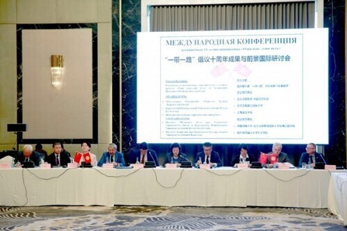 10月11日,由吉中友好协会主办的“一带一路”倡议十周年成果与前景国际研讨会在吉尔吉斯斯坦首都比什凯克举行。中国驻吉大使杜德文、吉副总理拜依萨洛夫、总统顾问、吉中友协主席布库耶夫、教育部长、副外长及两国各界友好人士近200人出席。