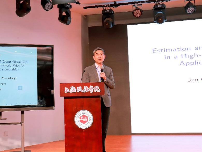 上海财经大学经济学院院长周亚虹作“Estimation and Inference of Counterfactual CDF in a High-dimension Framework: With an Application to Distributional OB Decomposition”主旨报告