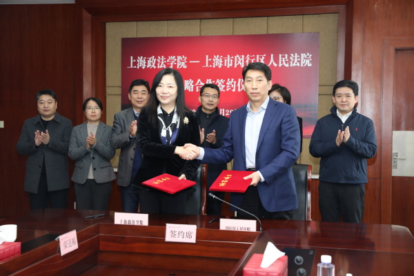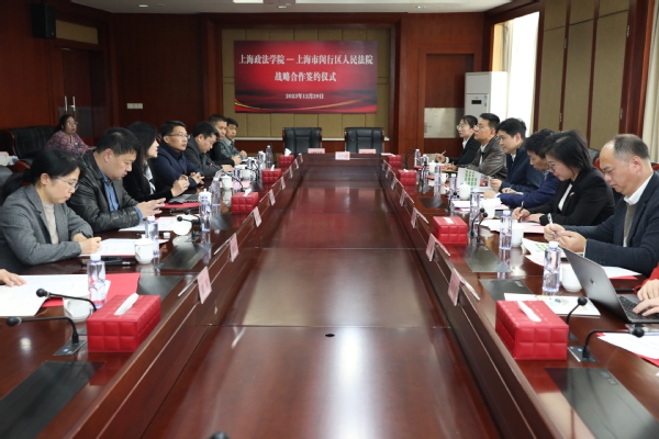 12月29日上午,上海政法学院—上海市闵行区人民法院战略合作签约仪式在求实楼413会议室举行。闵行区人民法院党组书记、院长王宇展,党组成员、副院长何云,立案庭庭长徐啸,民事审判庭庭长方敏,政治部副主任牟鹏,新闻中心副主任陈淋清等出席签约仪式。我校校长刘晓红,党委副书记、副校长高志刚等会见王宇展一行并进行深入交流与互动。签约仪式由高志刚主持。