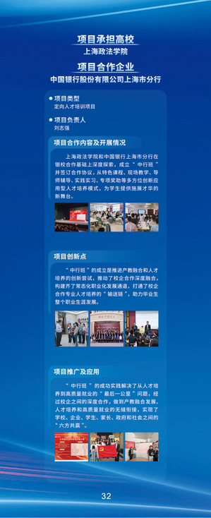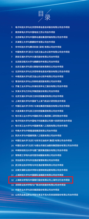 近日,教育部供需对接就业育人项目交流推进会在电子科技大学举办,现场公布了第一、二期供需对接就业育人项目优秀案例,共计35项。上海政法学院与中国银行股份有限公司上海市分行合作项目(“中行班”)从全国2万余项校企合作项目中脱颖而出,成功入选!据悉,该项目也是全国金融行业两个入选项目之一。