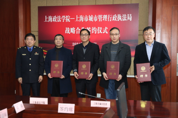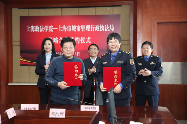 1月12日下午,上海政法学院—上海市城市管理行政执法局战略合作签约仪式在求实楼413会议室举行。上海市城市管理行政执法局党组书记、局长徐志虎,党组成员、副局长彭燕玲,校党委书记葛卫华,党委副书记、校长刘晓红,副校长郑少华等出席仪式。签约仪式由郑少华主持。