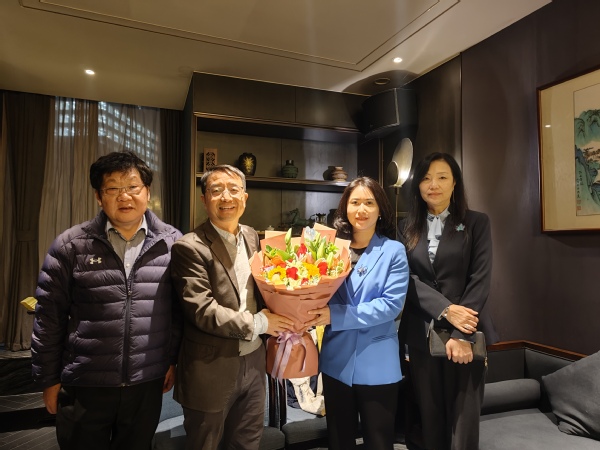 图为葛卫华书记、刘晓红校长、郑少华副校长与黄润源女士合影