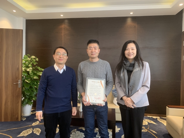 刘刚副书记与吴炜校友(左)、李澜校友(右)合影