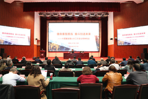 3月19日下午,学校在中国-上合司法培训基地举行党委中心组(扩大)学习会,邀请全国人大代表、华东师范大学党委书记梅兵作2024年全国两会精神专题辅导报告。校党委书记葛卫华主持学习会,学校党政领导及全体中层干部参加学习。